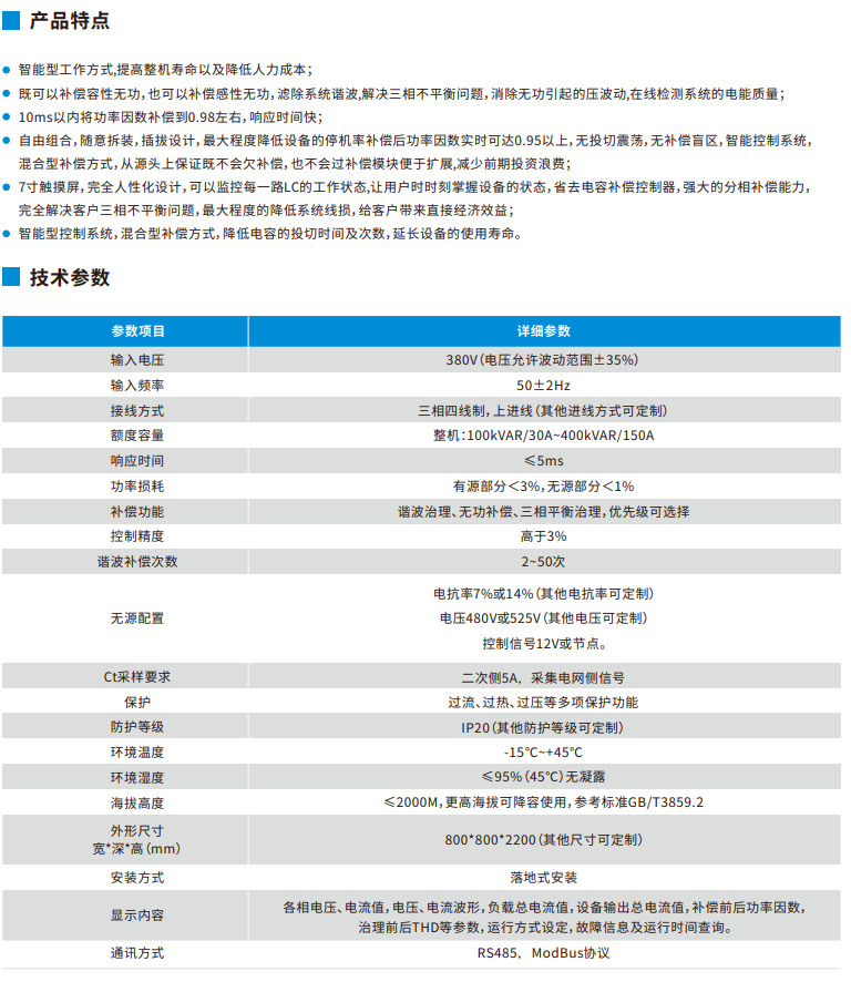 hanis-ASC混合型電能質(zhì)量綜合治理柜是將有源產(chǎn)品(APF或SVG)與無源產(chǎn)品完美組合,實現(xiàn)無死角連續(xù)補償?shù)?款產(chǎn)品,它采用全模塊化設(shè)計,組合靈活,其主動根據(jù)系統(tǒng)的線性動態(tài)需求,自動調(diào)節(jié)有源/無源模塊的輸出配比,同時滿足分補。其應(yīng)用領(lǐng)域包括裝備制造業(yè)、石油化工業(yè)、冶金業(yè)、紡織業(yè)、建材業(yè)、輕?業(yè)等各類?業(yè)配電場所,以及醫(yī)院、劇院/影院、商業(yè)綜合體等各類民用建筑行業(yè)配電場所。